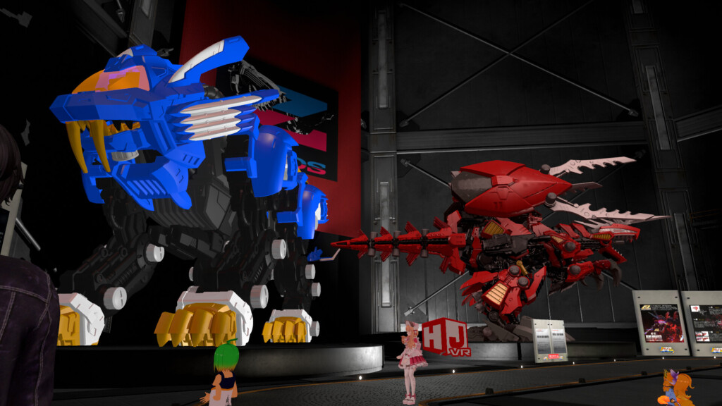 巨大スケールでライトアップされているゾイドの3Dモデルが展示されています。「ジェノブレイカー」を操作できるギミックも後日販売を予定しているとのこと。