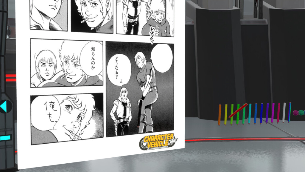 そしてもう一方のコブラでは開発中の作品が展示されているほか、そもそもネットミームでしか知らない人のために丁寧にコマが置かれています。改めてみるとページ単位すらも知らない人がいるかもしれませんね。