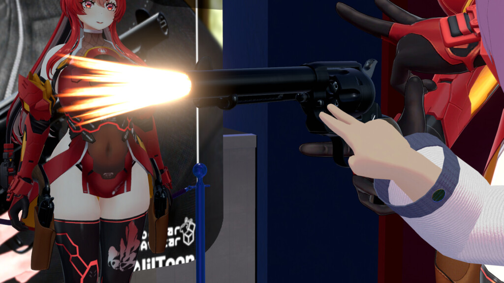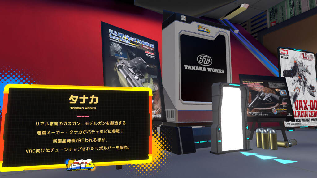 ガスガンやモデルガンを製造するメーカーのタナカのブースです。こちらでは、タナカワークスによる完全監修のVRChat内ギミックのリボルバーが販売されます。